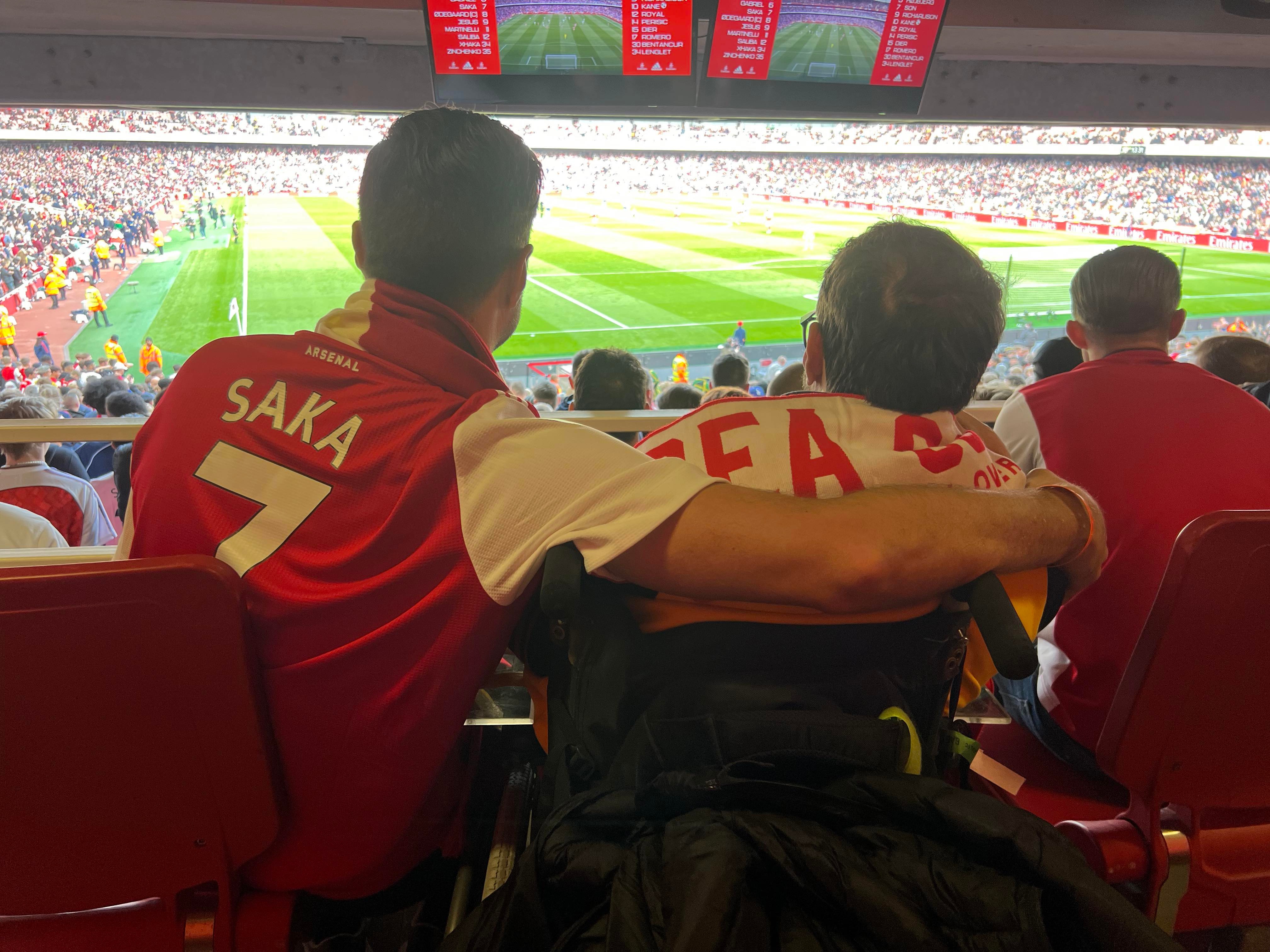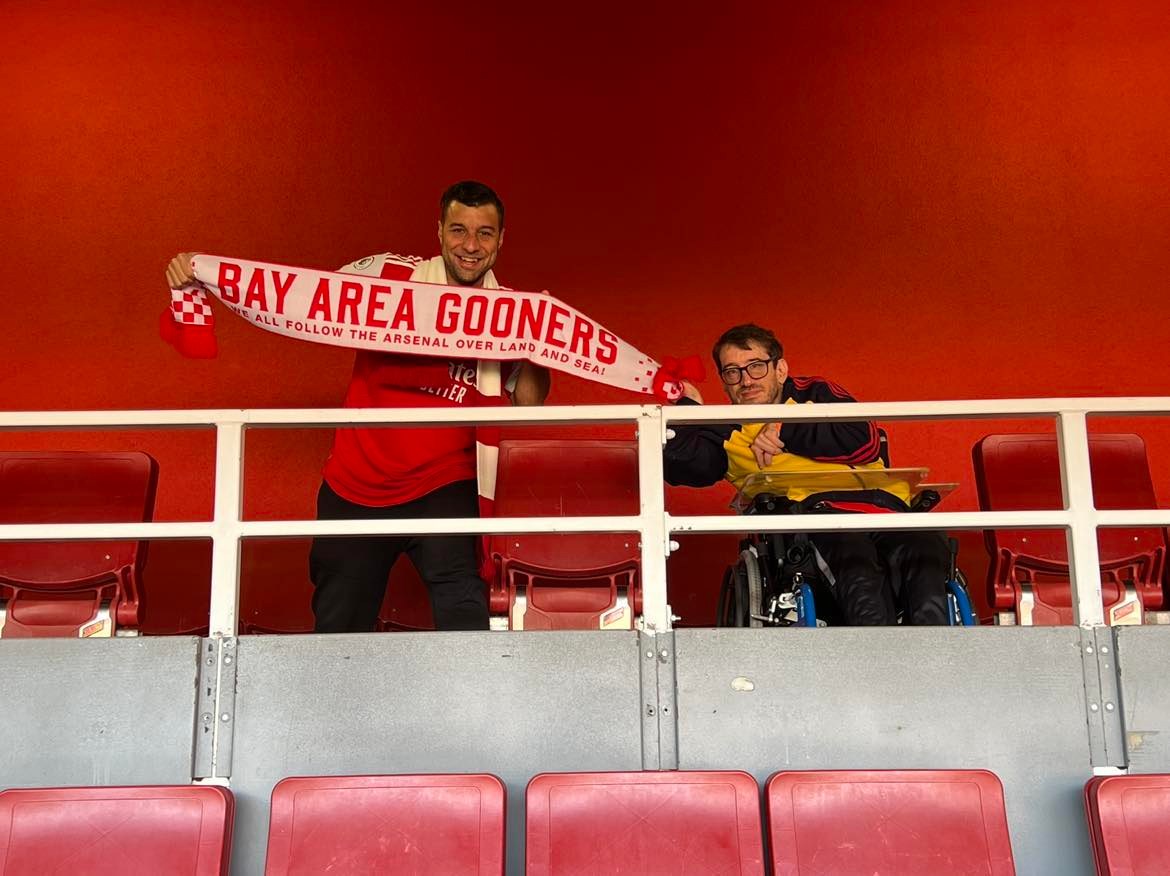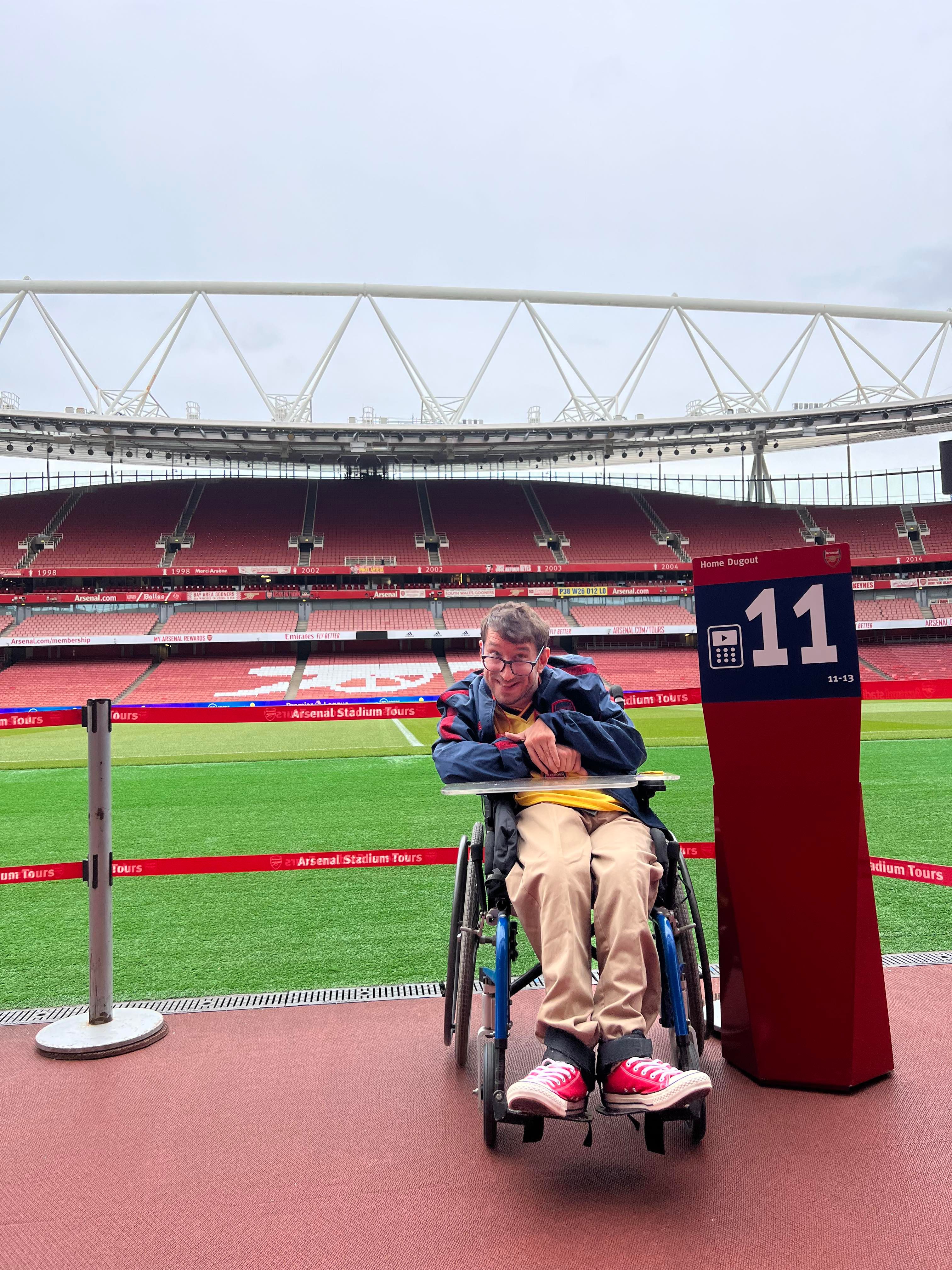 In 2021, Dave Seager, the author of several books on Arsenal, reached out to ask him to participate in a new book. Mahlon has cerebral palsy and uses a wheelchair, and Dave wanted him to share his story in Arsenal for Everyone, about Arsenal’s disabled supporters. Always check your Instagram DM’s, because you never know when one will provide a once in a lifetime opportunity or a chance for a new friendship. In this case I got both.