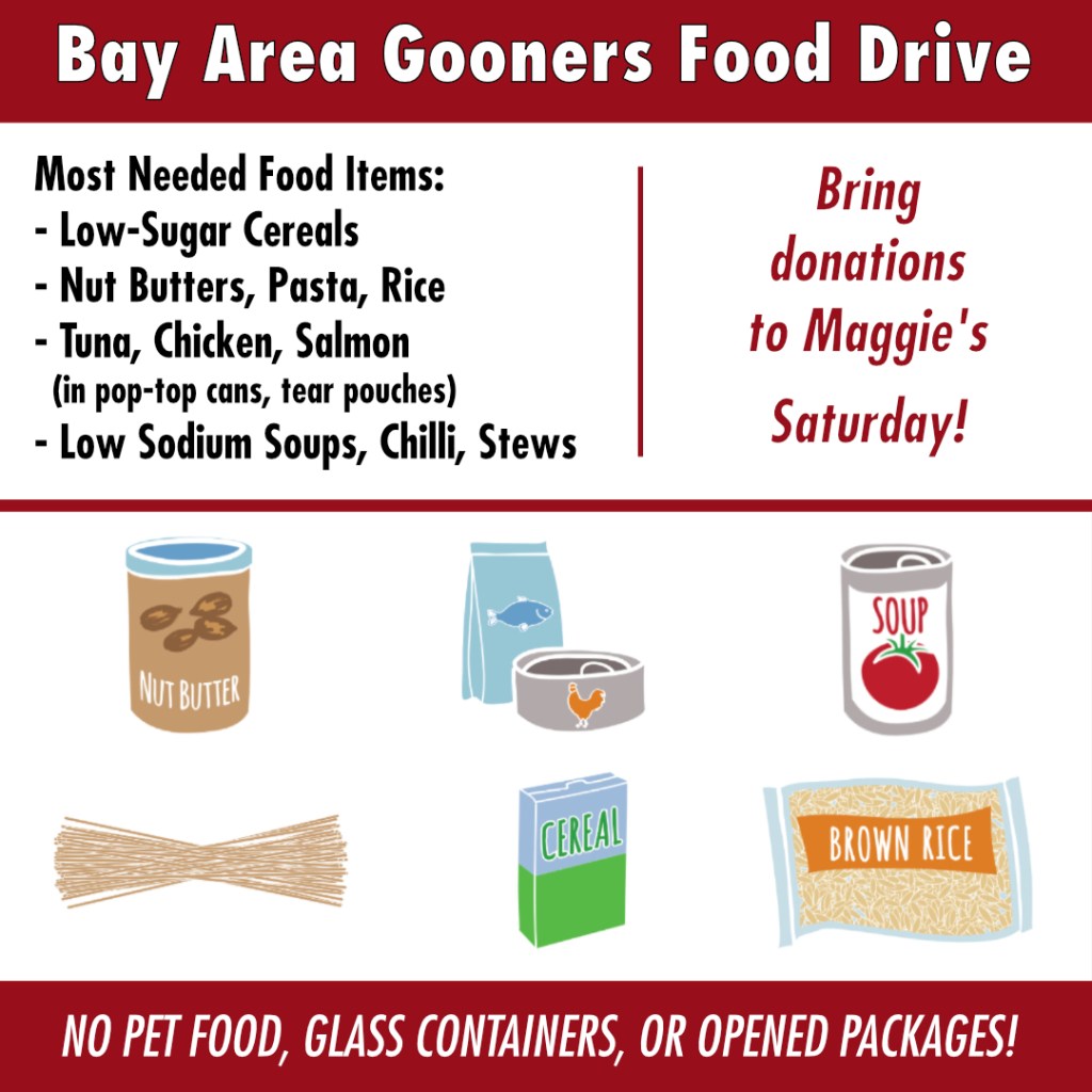 Speaking of giving, we’re hosting a Food Drive for the San Francisco-Marin Food Bank during this weekend’s match. A food donation gets you entered into a raffle for BAG scarves and t-shirts, so please contribute!