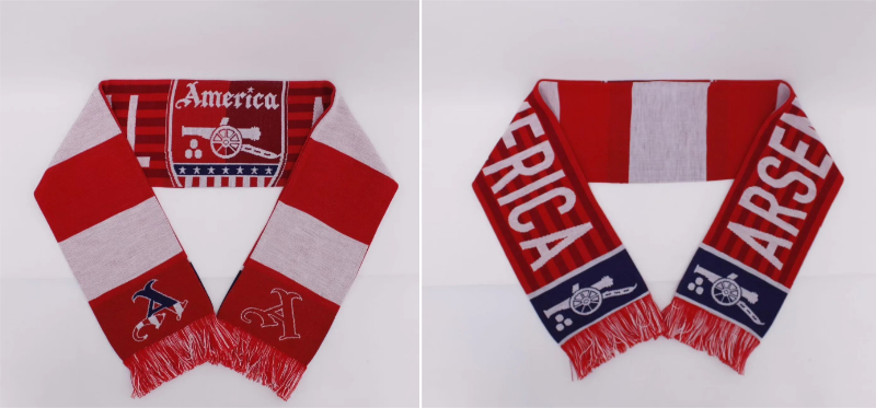 Arsenal America membership packages are out and we’re thrilled they include a scarf designed by none other than our own, Holly Hickman. Holly’s previous work includes our website, scarves, t-shirts, the banner which hung at the Emirates, and of course, the fantastic Transatlantic Trip Kit. If you’re not already a member, we encourage you to join.