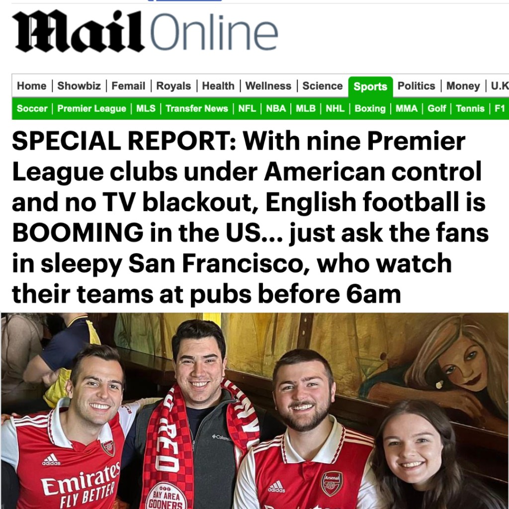 In other news of the world, the Bay Area Gooners received a mention in a recent Daily Mail piece about Premier League fans in the US.