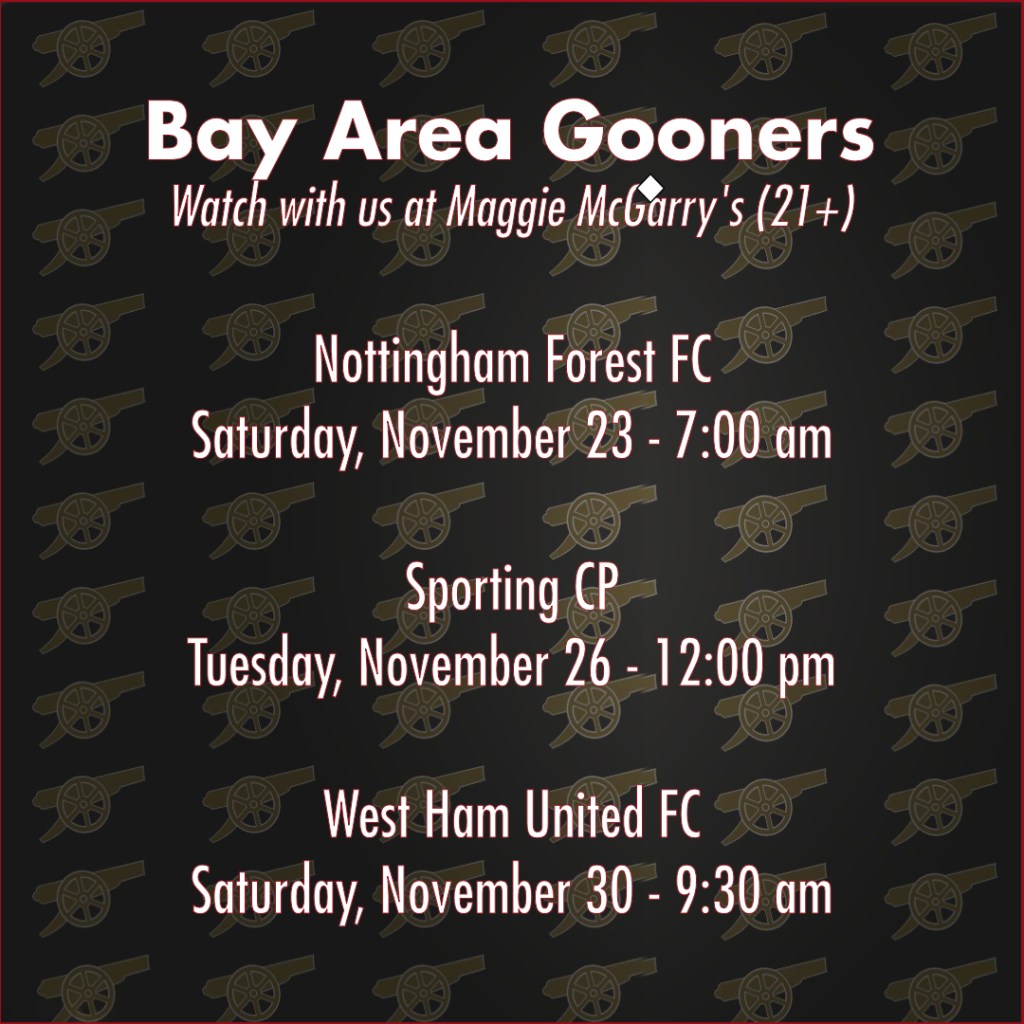 This is the first match of a busy November. 6 different chances for you to join us at Maggie McGarry’s!