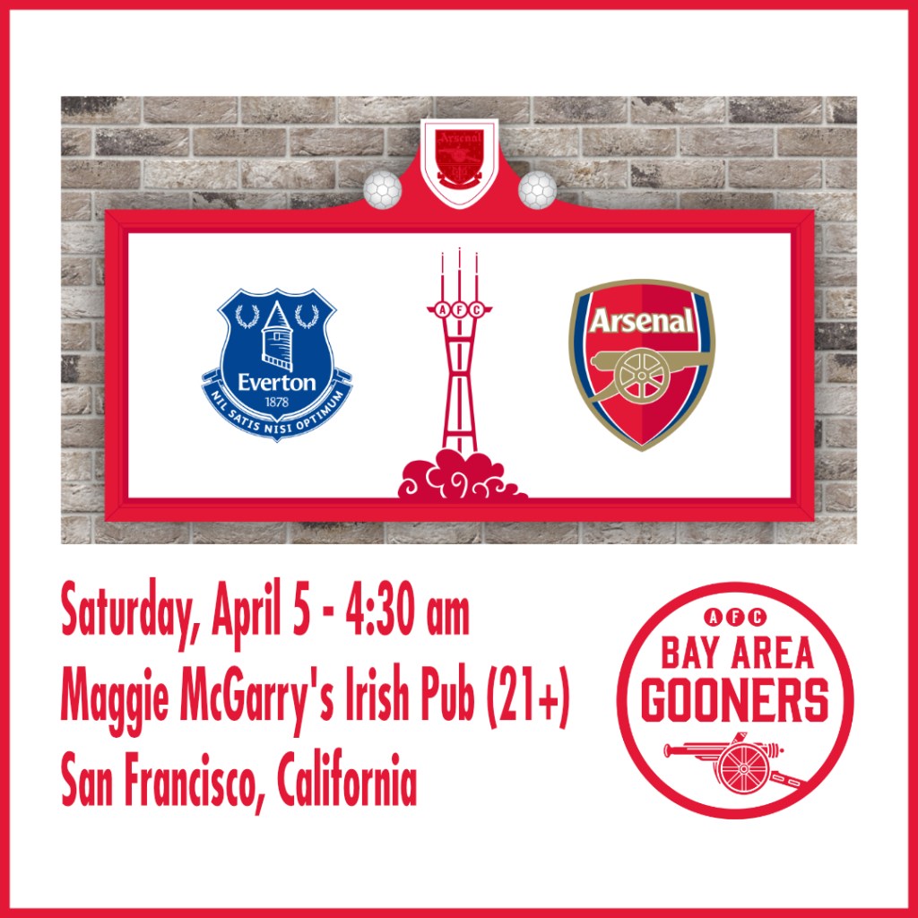 West Coast Gooners are faced with another predawn kickoff Saturday as Arsenal are away at Everton. Maggie’s is opening for us, presenting an opportunity to cement your BAG legend status.