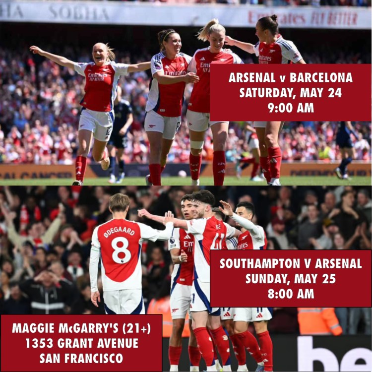 We’ll be at Maggie’s twice this weekend.The day before the lads play, there’s a far more significant match. The Arsenal Women face Barcelona in the Women’s Champions League Final Saturday. If the run-in for this tournament is any indication, this should be an exciting match.