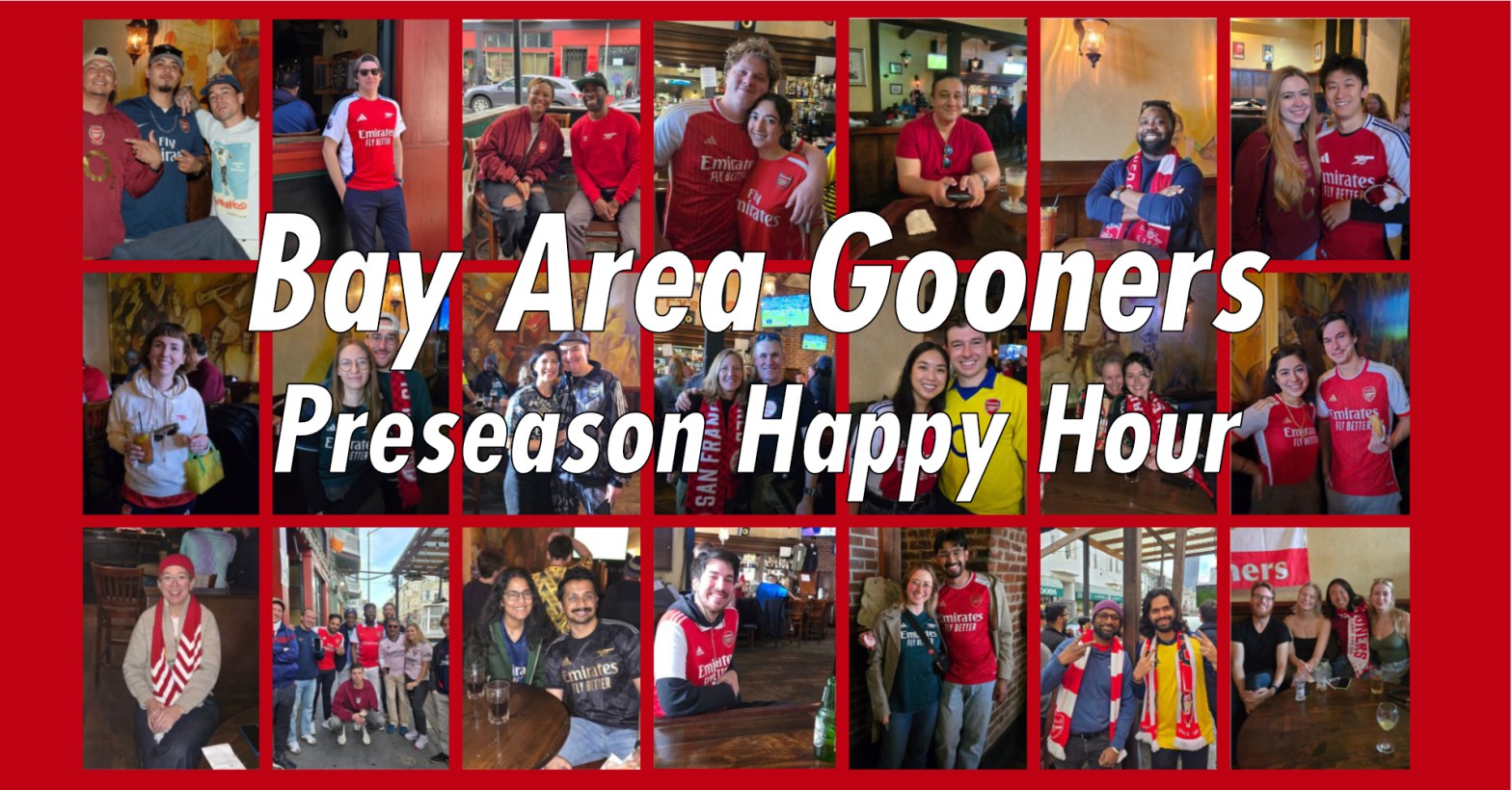 A chance to meet and mingle with your fellow Gooners outside of the early mornings. We’ll show a replay of the preseason friendly against Sp*rs, from earlier in the day. There will be food and a discount on Estrella pints for anyone wearing anything Arsenal.