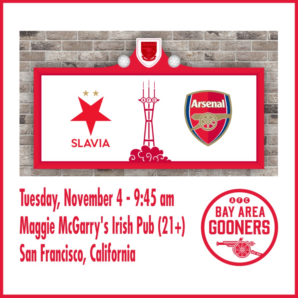 Arsenal’s Champions League league phase continues tomorrow as the Gunners head to Prague. Kickoff time is 945 AM and Maggie’s will have the match on!